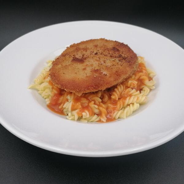 Jägerschnitzel mit Nudeln und Tomatensauce