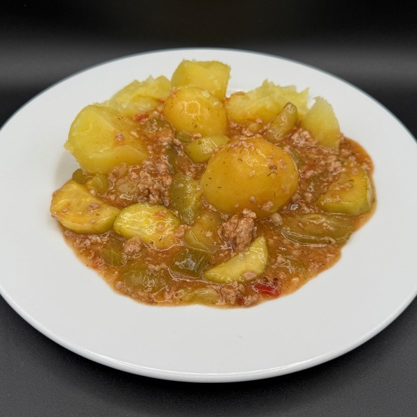Schmorgurken mit Hackfleisch und Salzkartoffeln