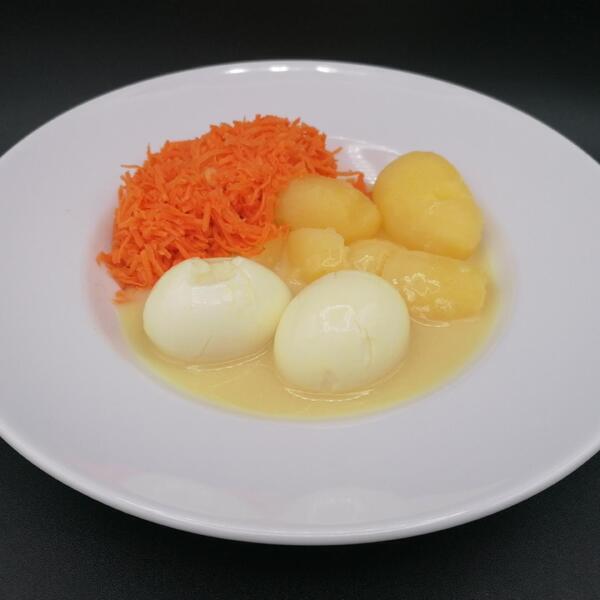 Eier in Senfsauce mit Apfel-Möhren-Rohkost und Salzkartoffeln